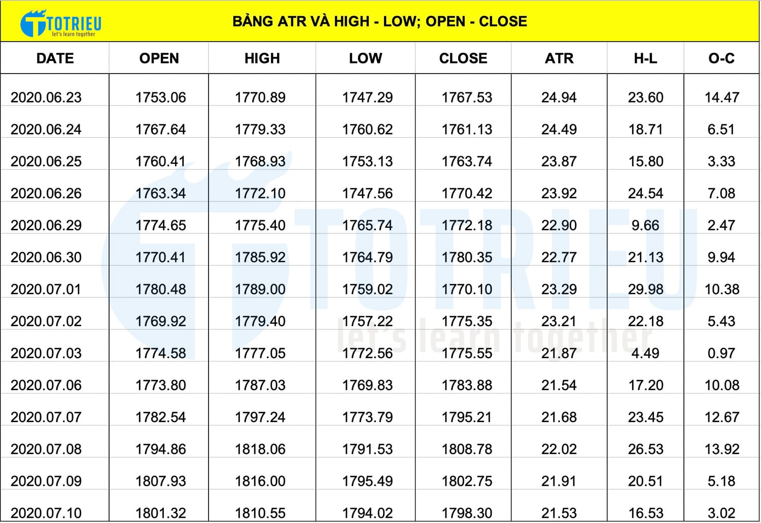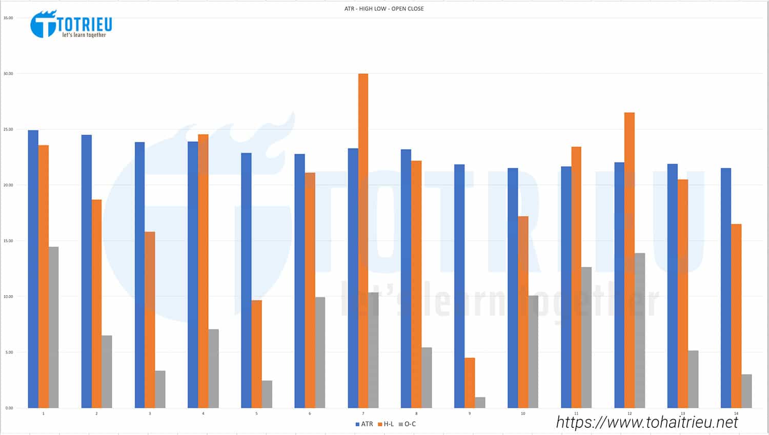 - Khoảng cách High - Low có thể nói bám tương đối sát với giá trị ATR.