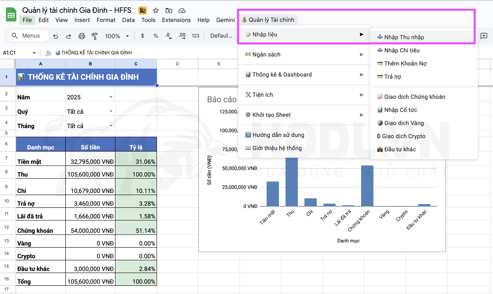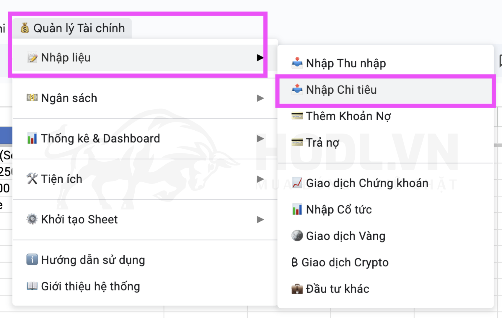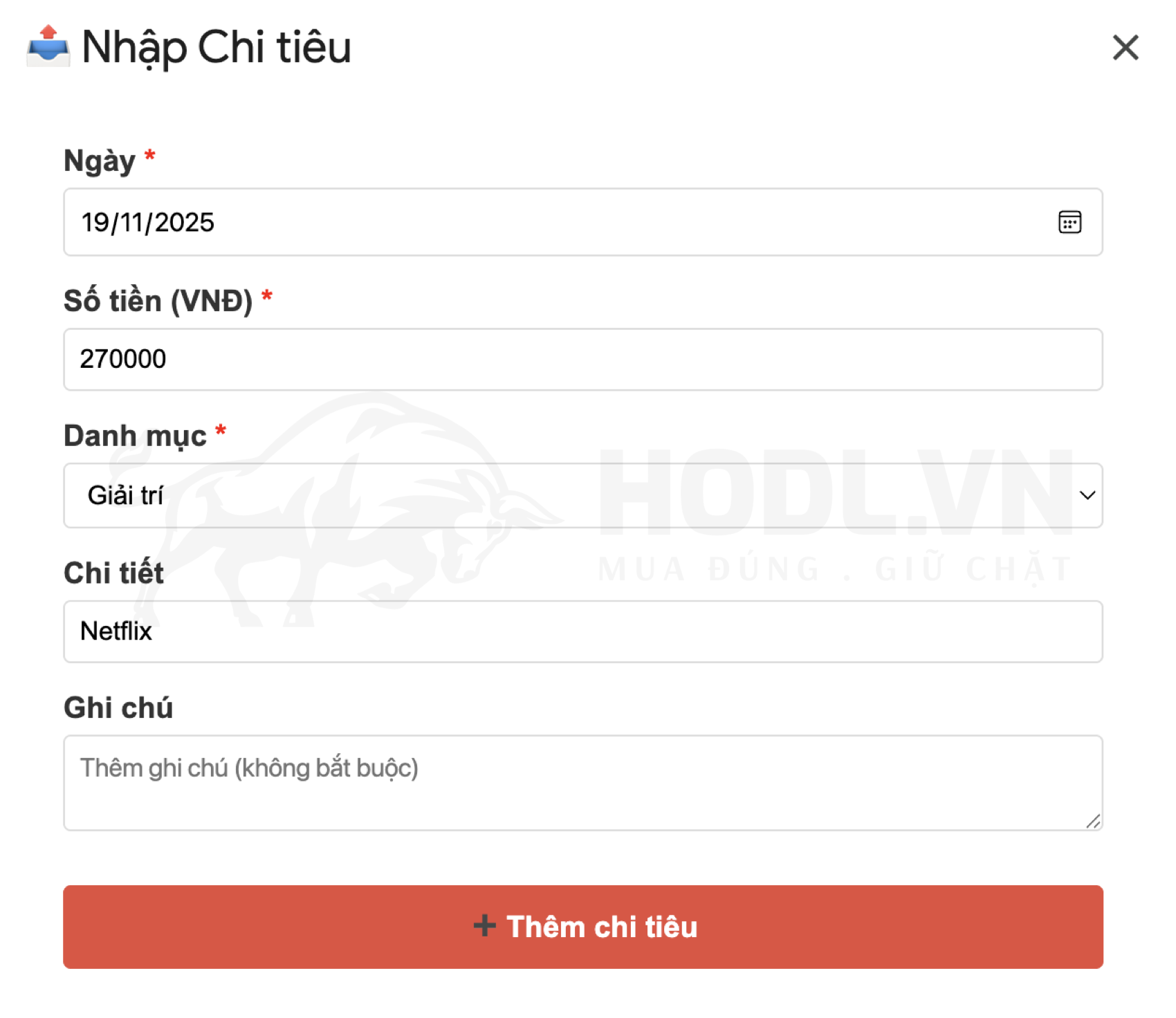 “Ồ, hôm nay chỉ có 4 giao dịch thôi à?” Chị mỉm cười, mở Google Sheet lên, và bắt đầu với Menu “Quản lý Tài chính” → “Nhập Chi tiêu”.