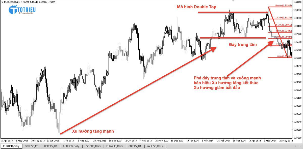 Trong trường hợp trên, Khi xuất hiện Mô hình hai đáy, Giá đã hình thành Xu hướng tăng của tỷ giá rất mạnh mẽ.