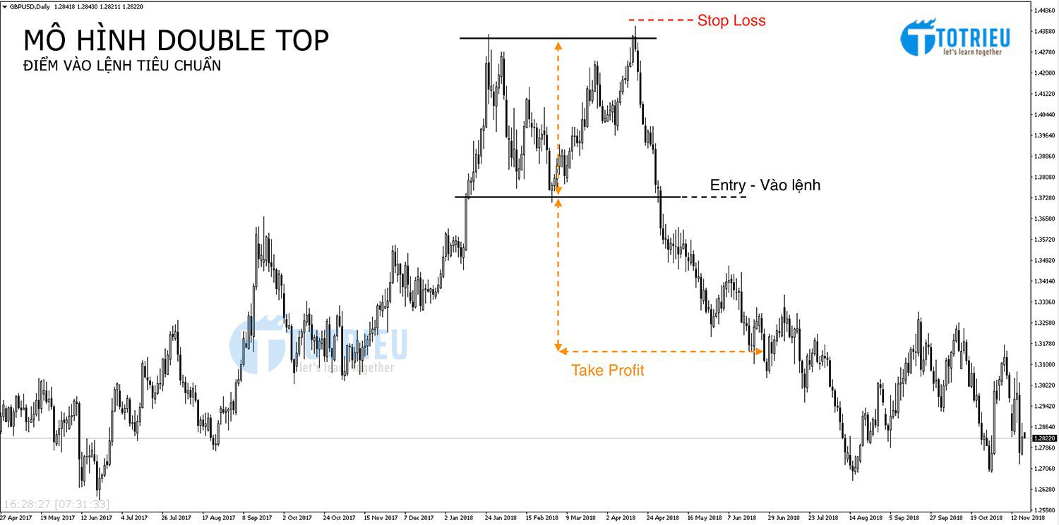 Mô hình Double Top: Điểm vào lệnh tiêu chuẩn