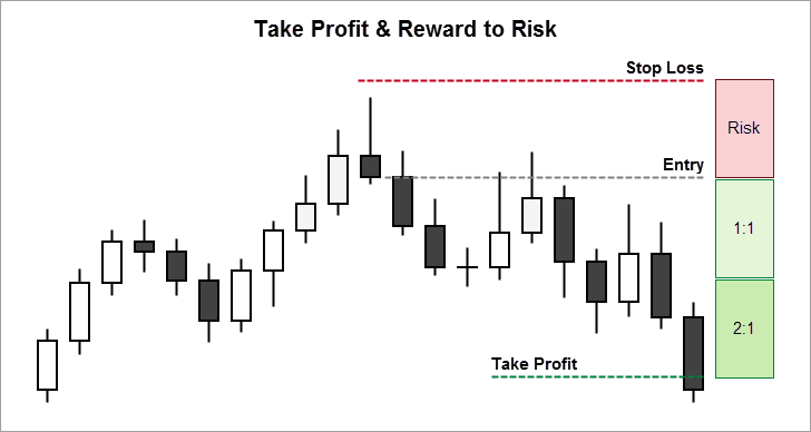 Giống như hầu hết các mô hình Price Action mà tôi đang giao dịch, tôi nhắm mục tiêu tỷ lệ Risk:Reward là 1:2 khi giao dịch với mô hình nến Shooting Star. Nói cách khác, nếu tôi đang đặt Stop Loss là 50 pips, tôi sẽ đặt mức Take Profit 100 pips bên dưới điểm vào lệnh của tôi (xem hình bên dưới).