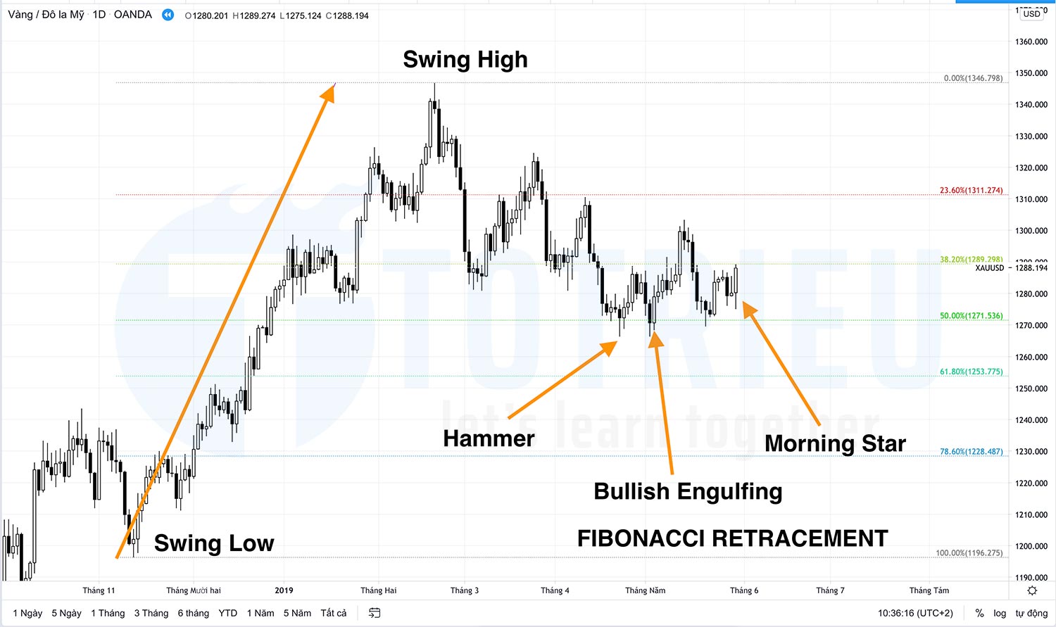 Đọc lại bài viết này để hiểu rõ hơn: Kết hợp Fibonacci Retracement với các Mô hình nến Nhật.