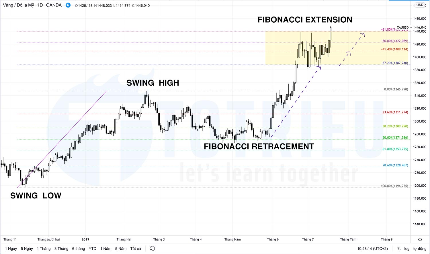 Sau khi tìm hiểu các vấn đề này, chúng ta sẽ đi vào các ví dụ thực tế áp dụng Fibonacci Extensions trên biểu đồ thực tế.