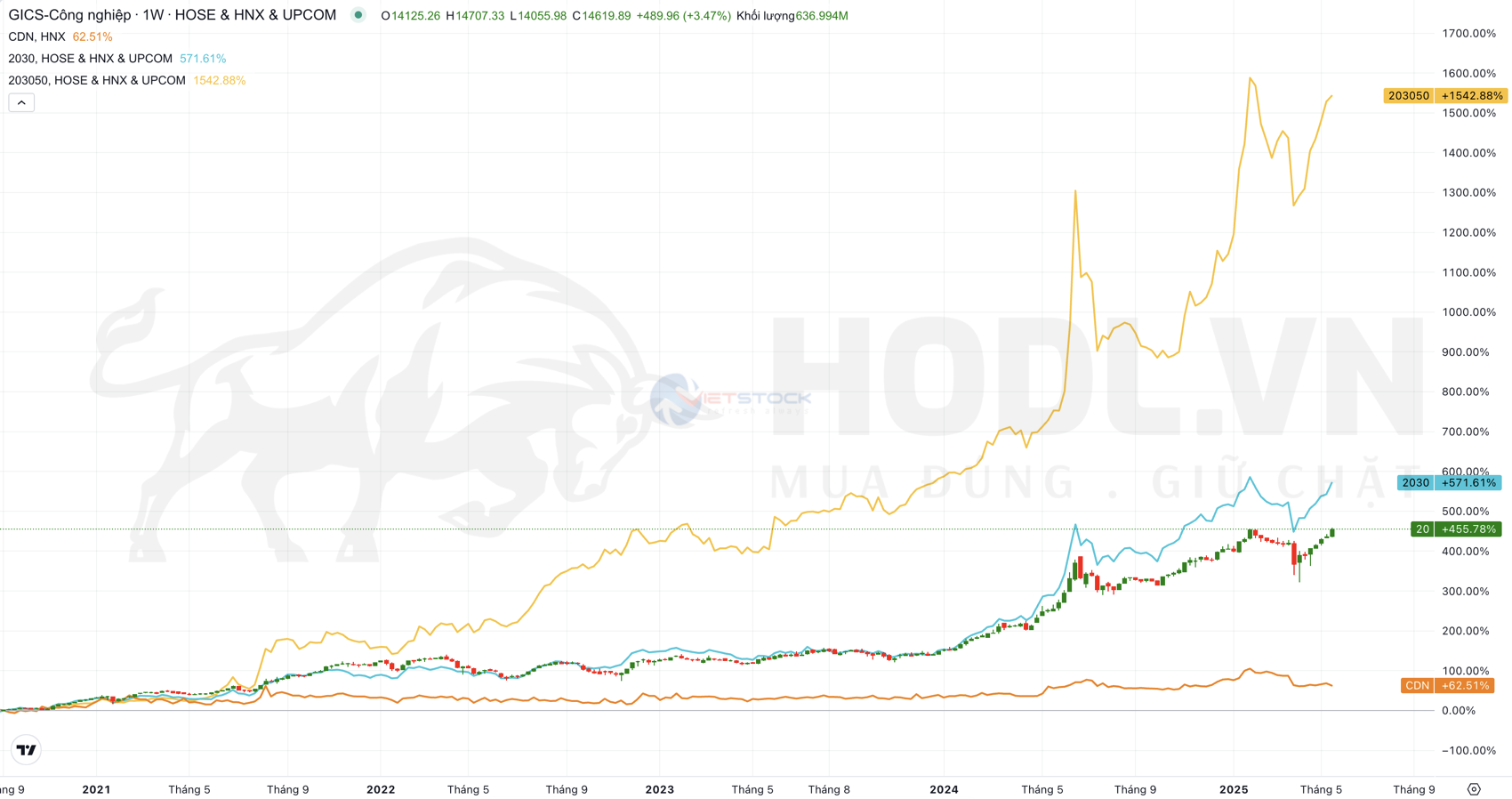 So với Ngành Công nghiệp, Vận tải và Cơ sở hạ tầng giao thông, giá cổ phiếu CDN có hiệu suất vô cùng kỳ lạ khi chỉ tăng 62,5% trong 5 năm. Với các phân ngành chính thì mức tăng tương ứng là 455.78%, 571.61% và 1542.88%.