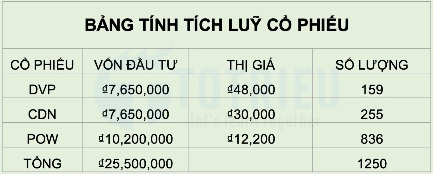 Mời các bạn xem bảng tích luỹ dưới đây: