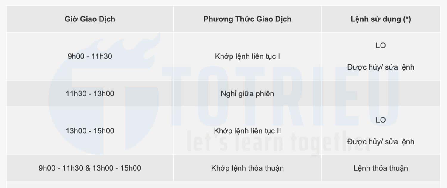 1.1. Giờ giao dịch chứng khoán tại HOSE