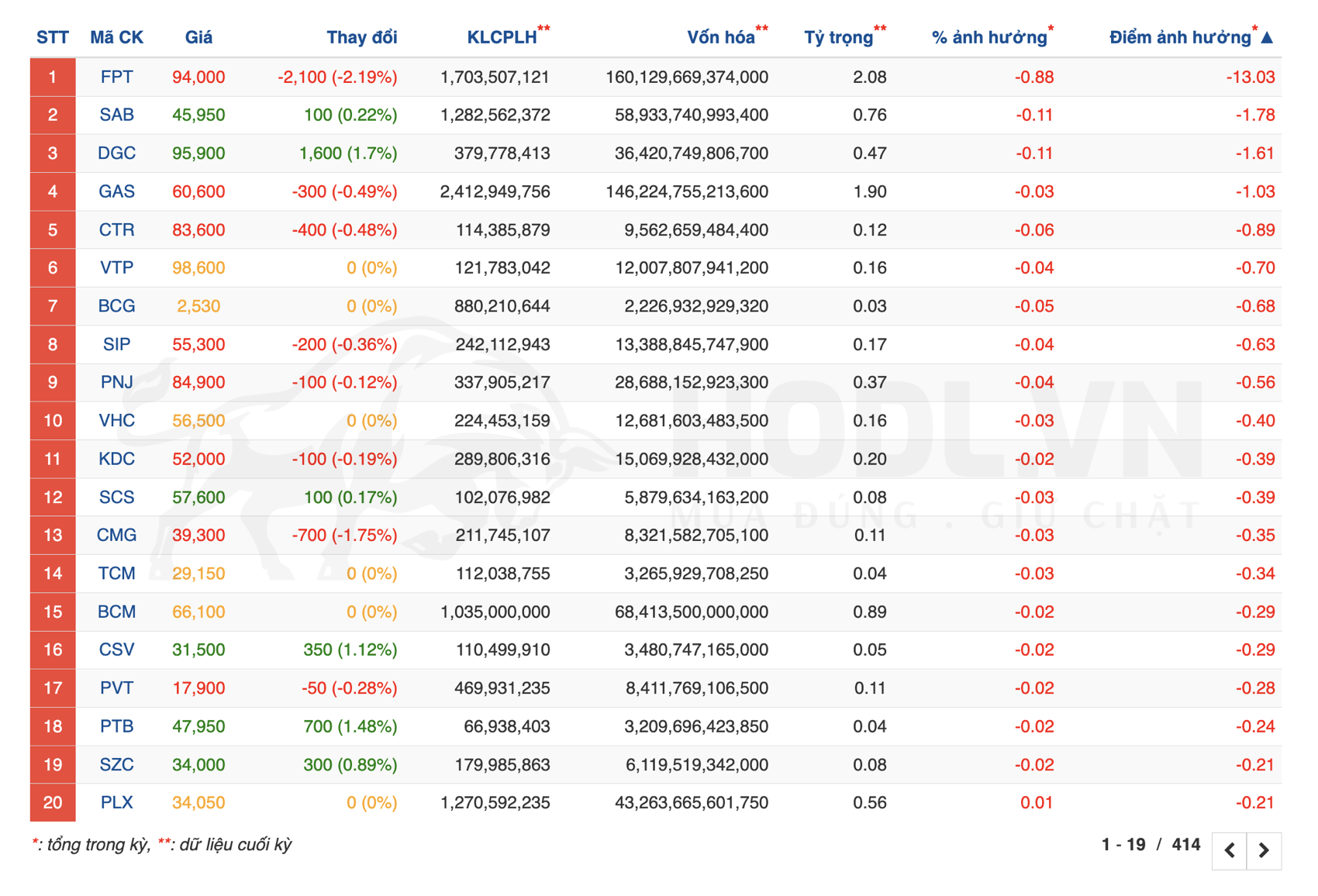 - MWG: +1,22%, tỷ trọng 1,59%, đóng góp +8,74 điểm