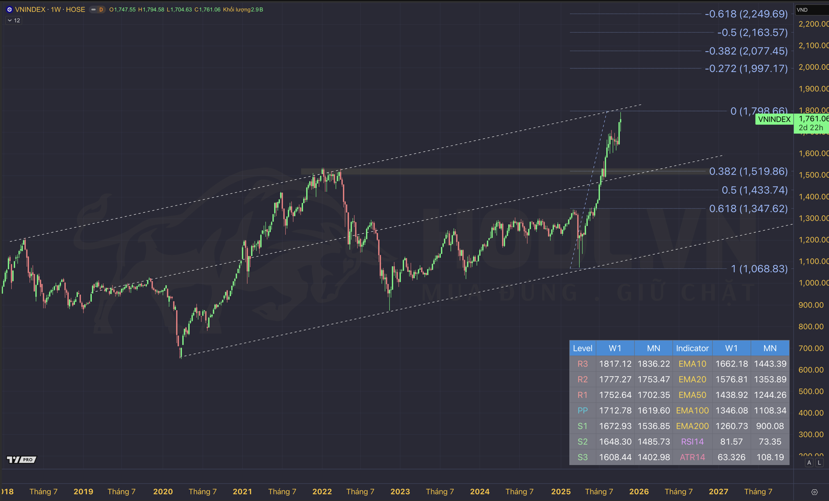 - EMA200: 1,260 điểm – Hỗ trợ dài hạn