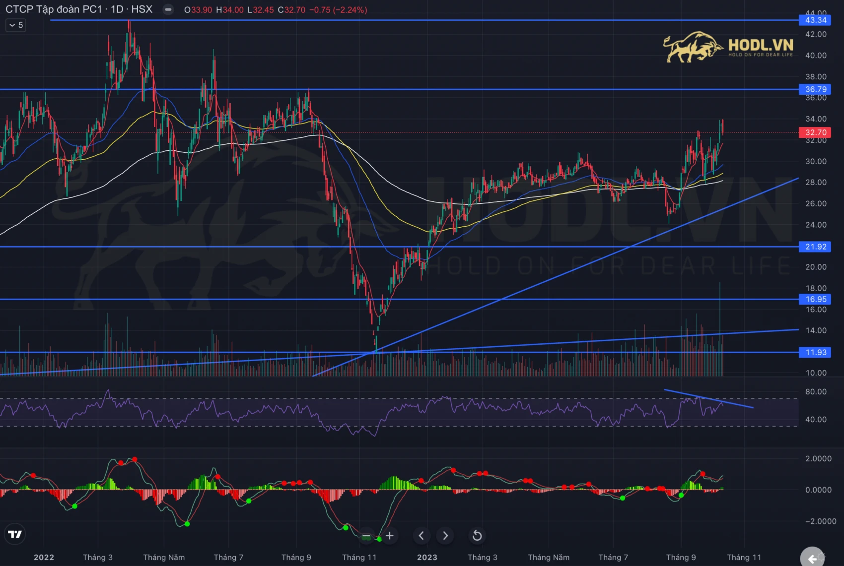 Phân tích kỹ thuật Cổ phiếu PC1 quý 4-2023, Tôi sẽ tập trung vào hỗ trợ – kháng cự và tín hiệu phân kỳ điều chỉnh: