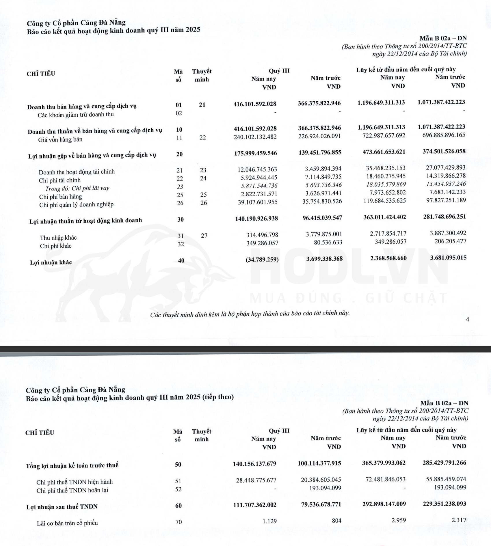 Bảng dưới đây tổng hợp kết quả kinh doanh 7 quý gần nhất của CDN, bao gồm Q3/2025 mới nhất từ BCTC chính thức: