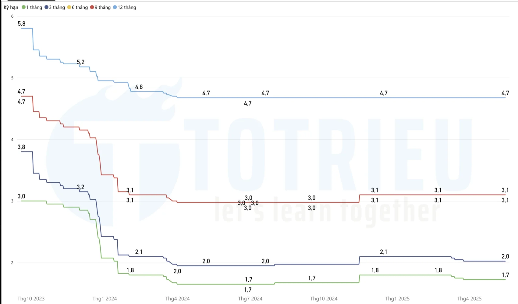 Lãi suất huy động Top 4 ngân hàng bao gồm Agribank, BIDV, Vietcombank, Vietinbank đi ngang hoặc có dấu hiệu giảm: