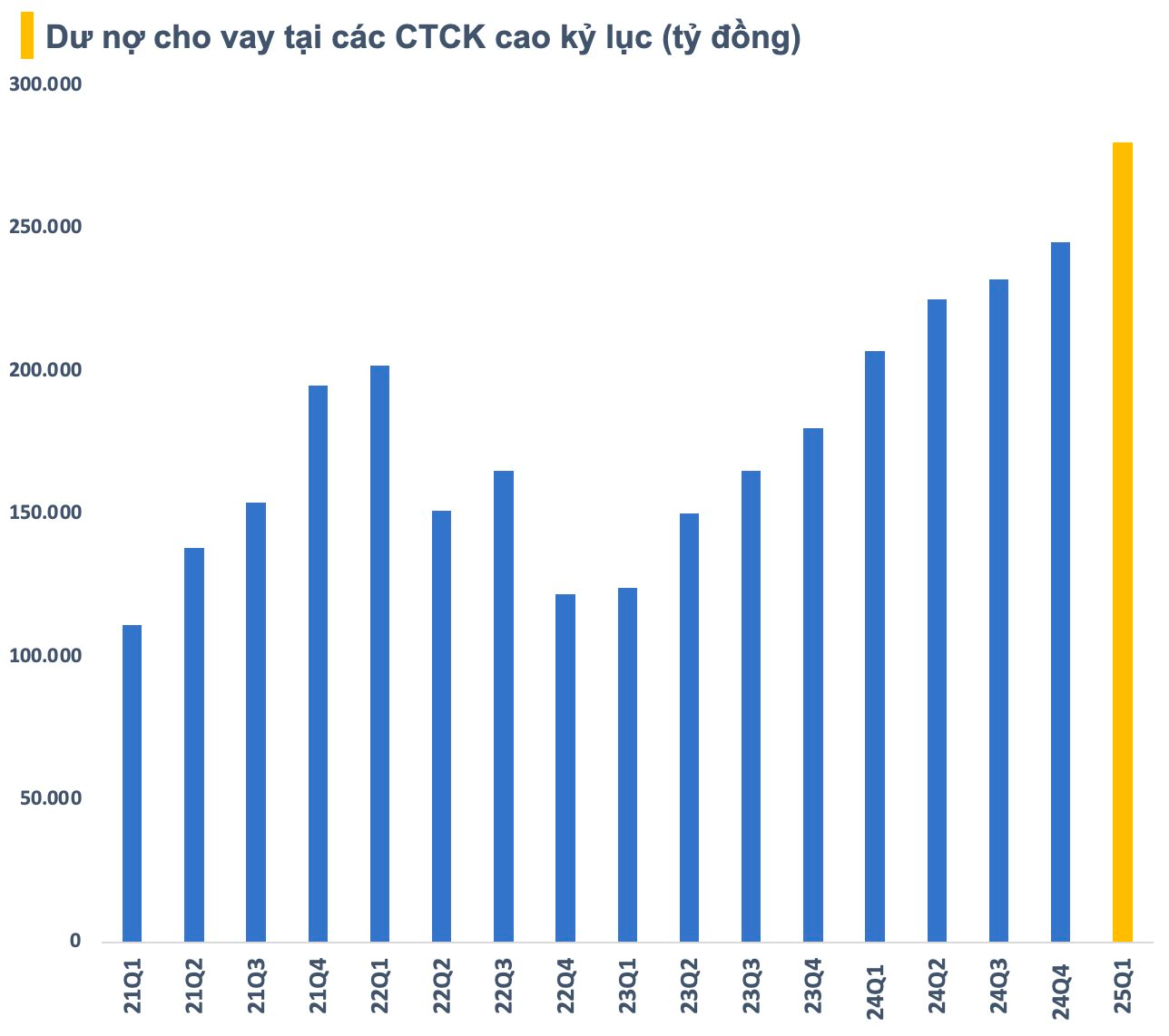 Với các số liệu này cùng với Thống kê mức vay Margin toàn thị trường đạt ngưỡng kỷ lục khoảng 280.000 tỷ đồng: